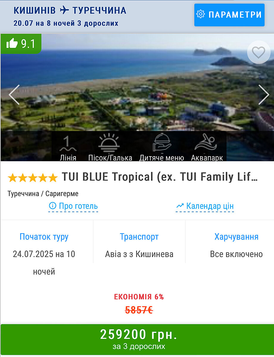 Сейчас цена аналогичного тура из Кишинева на 14.07, 7 ночей - 2400 евро, т.е. выше больше, чем в 2 раза.