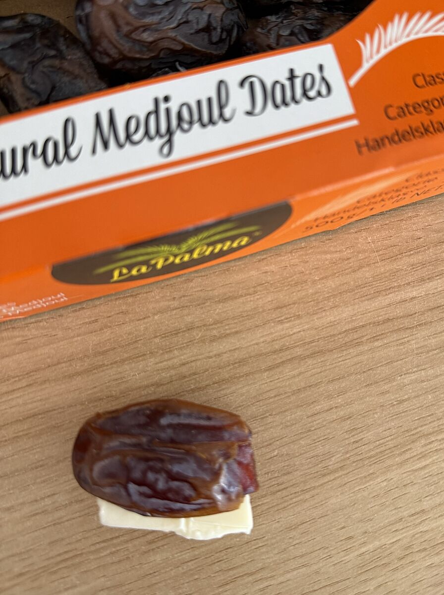 Финик,сливочное масло и фисташка.Финик разрезать,достать косточку,положить внутрь фисташку и кусочек сливочного масла,сочетание вкуса просто божественное)Пробуйте.