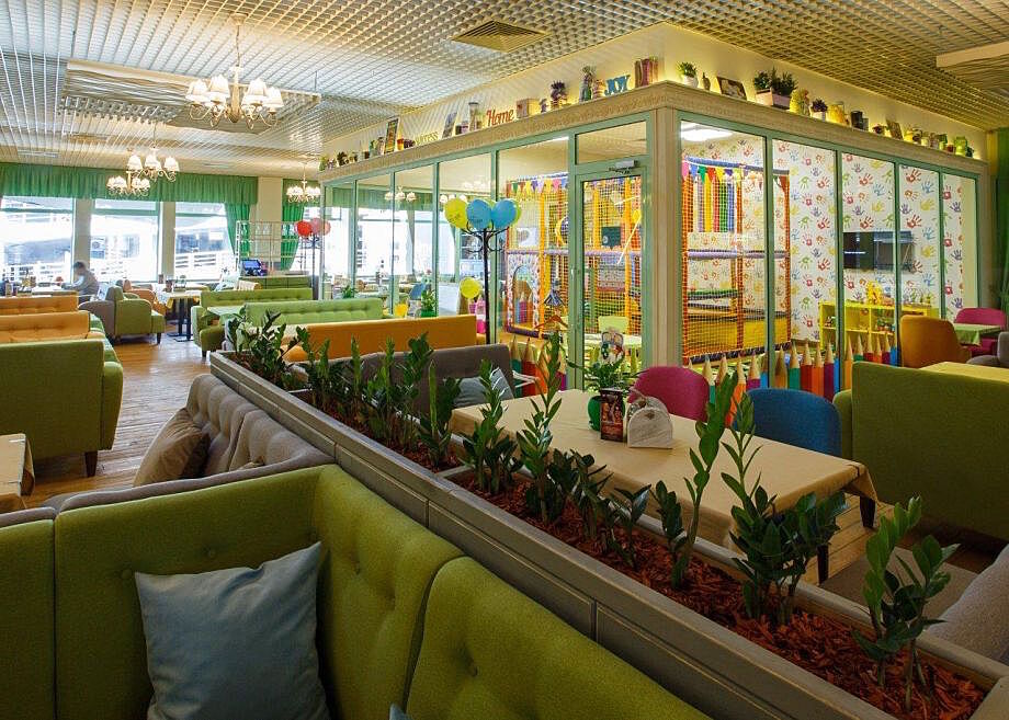 Я в Киеве, у нас есть Песто Кафе с детской комнатой (она прилегает прямо к залу, отделена стеклом), выпускали туда детей, сами сидели болтали, пили кофе.