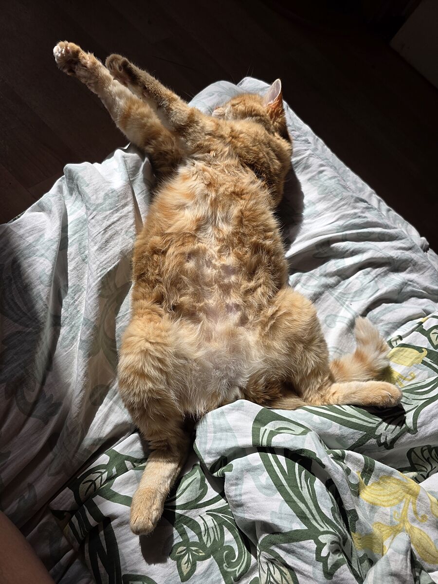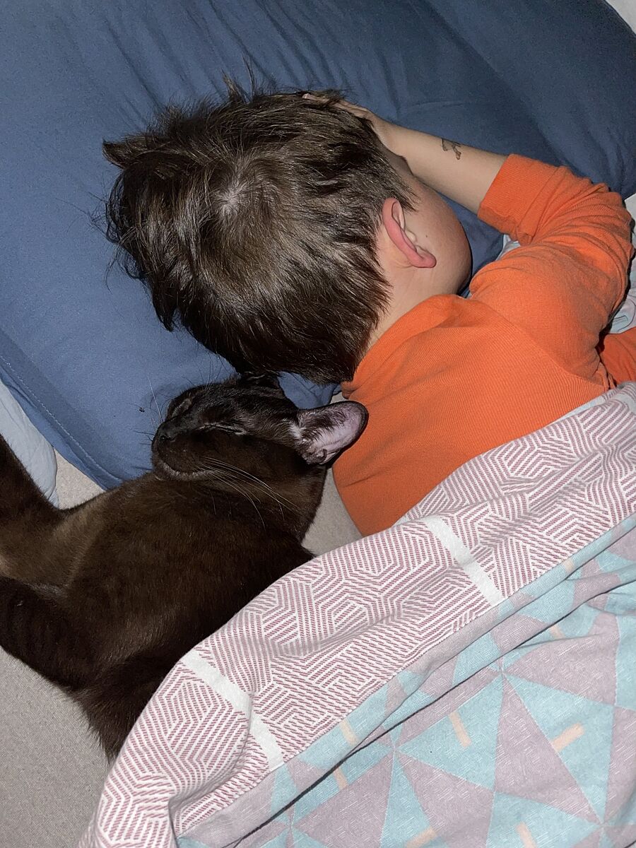 я по столу не дозволяю лізти, але не маю нічого проти коли киця приходить до мене спати. вона всю мою вагітність у мене біля живота спала. зараз коли біля голови, коли під сракою, коли просто поряд спить. і коли було холодно після вимкнення опалення, вона лягала біля мене, я її вкривала і вона прям кайфувала. мені не шкода)