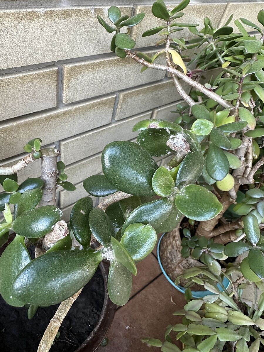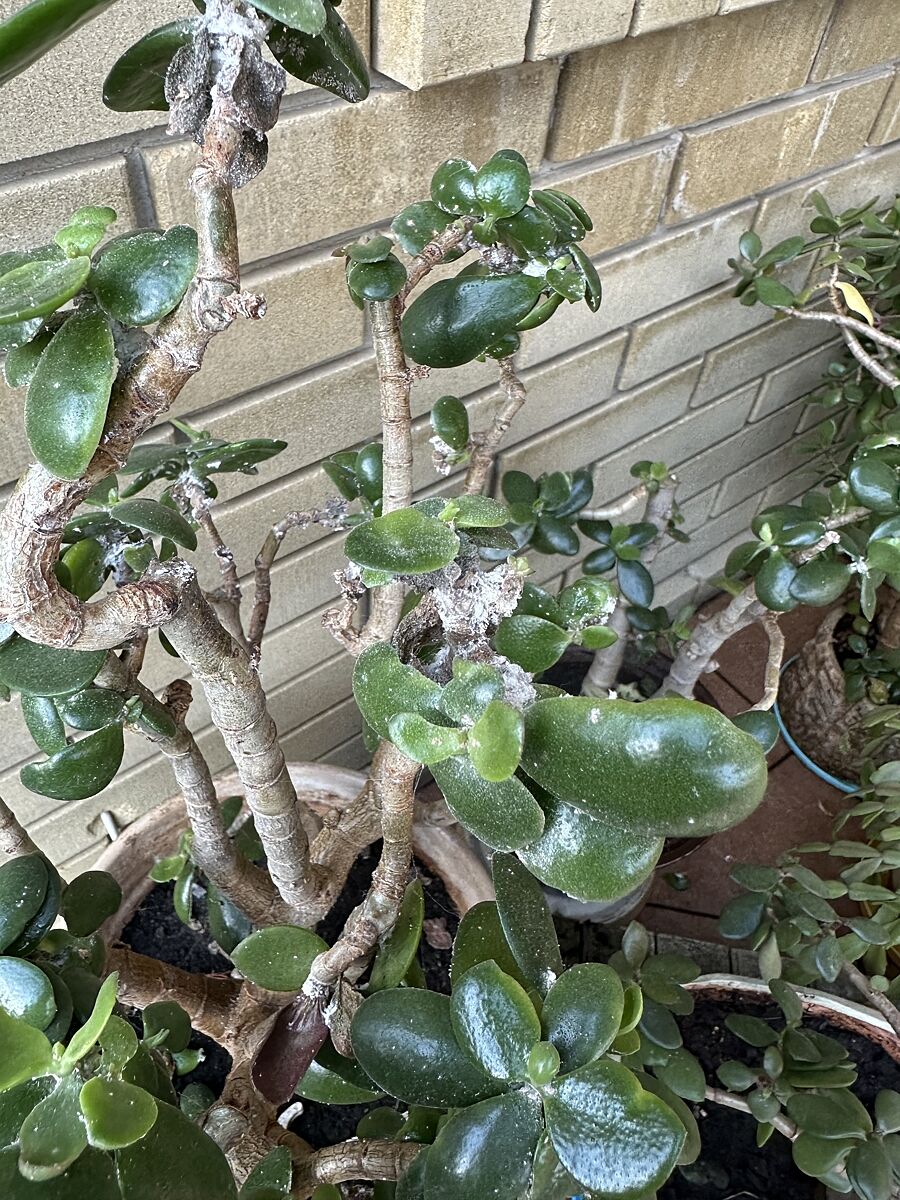 На фото — товстянка (грошове дерево, Crassula ovata), і видно ознаки ураження: