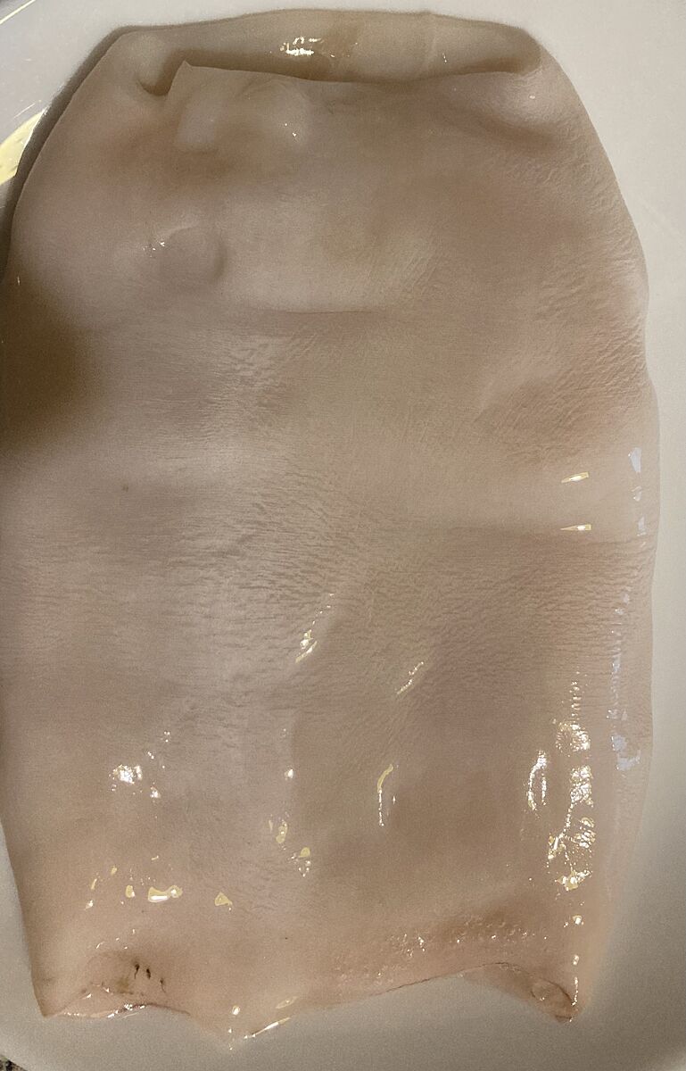 Купила мороженный, не я выбирала, какой дали такой и взяла. Дома разморозила.. форма не как всегда и цвет не белый, а розово-белый. На фото серый, вживую розоватый. Обычно все они белые были.