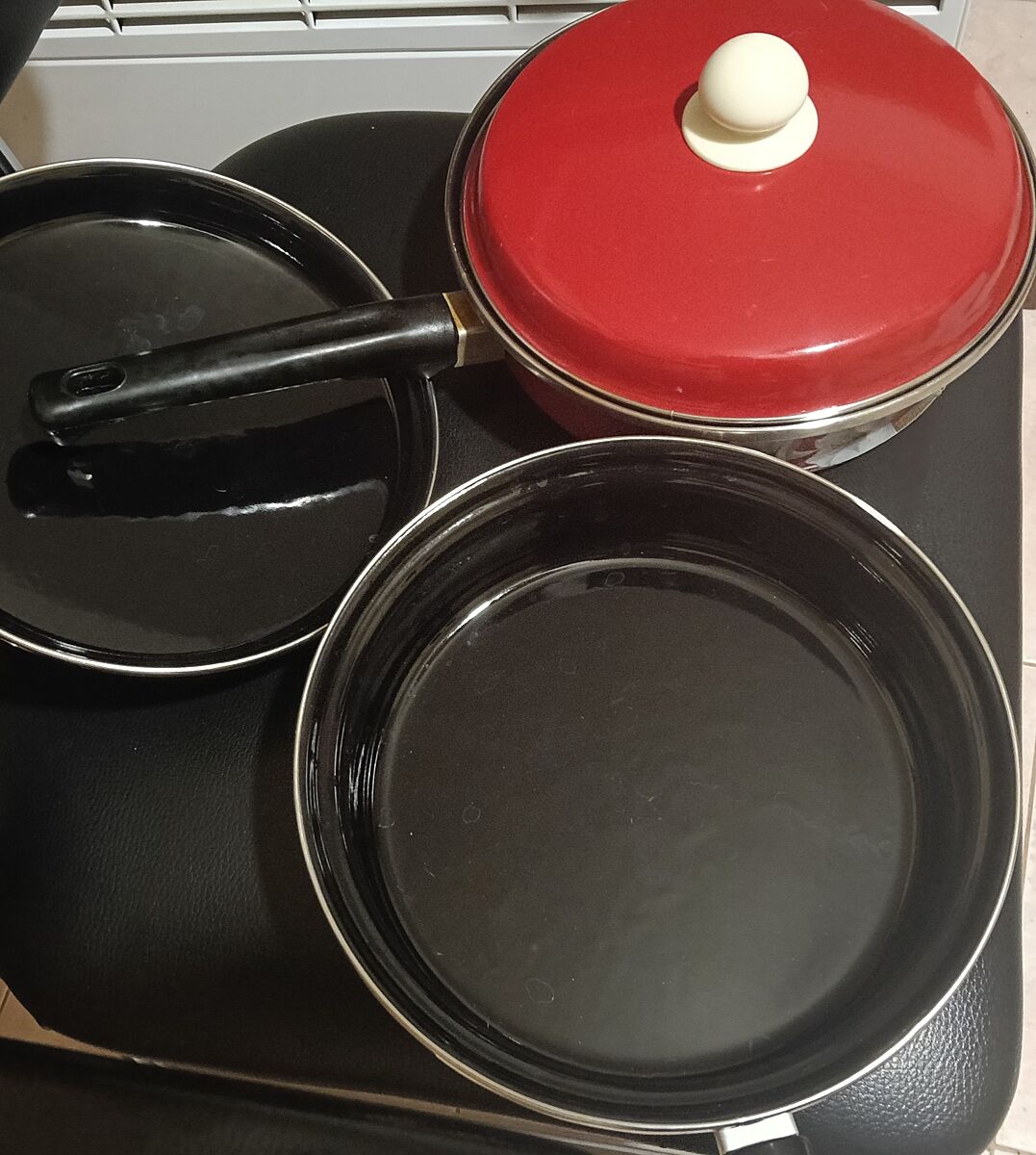 Насколько я понимаю, это советские. Когда искала, вбивала ’эмалированная сковорода’. Но 99% это белая эмаль и тонкое дно. Это вообще не то. Нужна именно черная и толстое дно. Минуту, на дне есть значек, сделаю фото сейчас