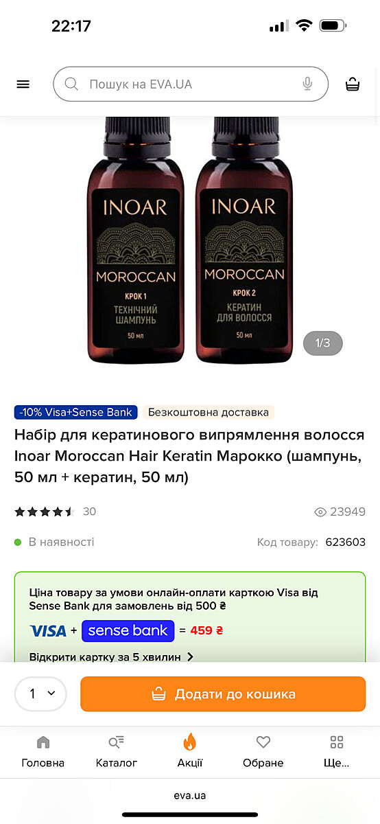 Иноар мороккан - отличный кератин, я им делаю. Единственное, я бы все-таки лучше на других сайтах покупала, еве нет доверия. Ну и смотрите осторожно, сжечь волосы очень легко. Слишком много состава, слишком мало состава, не та температура, не досушил - и все, проблемы.