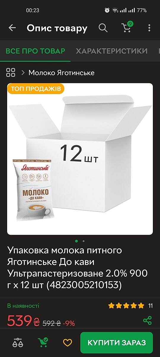Молоко до кави не збиваю, тому беру звичайне Яготинське 1%не в пляшках, нам подобається лайт, не жирне, думаю оце має бути теж норм, але в Сільпо його не бачила.