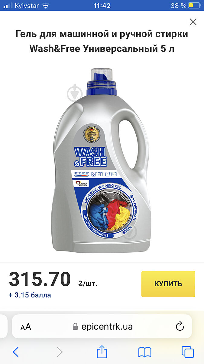 Він не коштує 315 грн як на фото. Ковпачок, і добавляю ще трохи хорошого прального порошку, це на машинку на 5-6 кг
