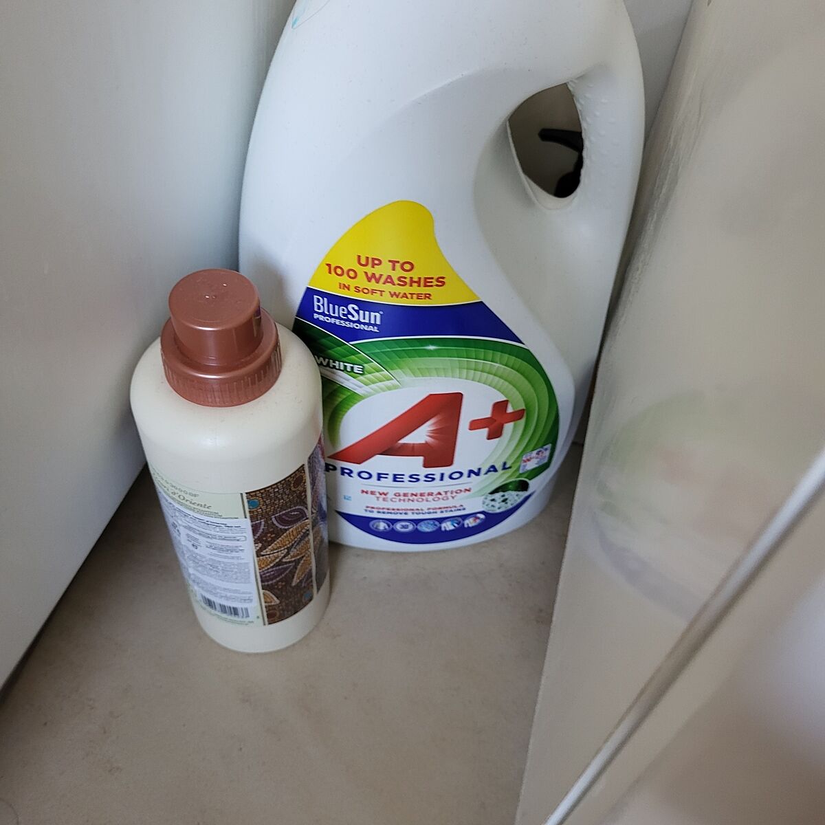 У мене 2 порошка для прання. Самий дешевий гель безфосфатн й для прання щоб освіжити в бутилці 3-4 літри. І обов´язково 2-й арієль аквапудра для білого, для прання брудних речей. Дорого, але він всі плями видаляє.