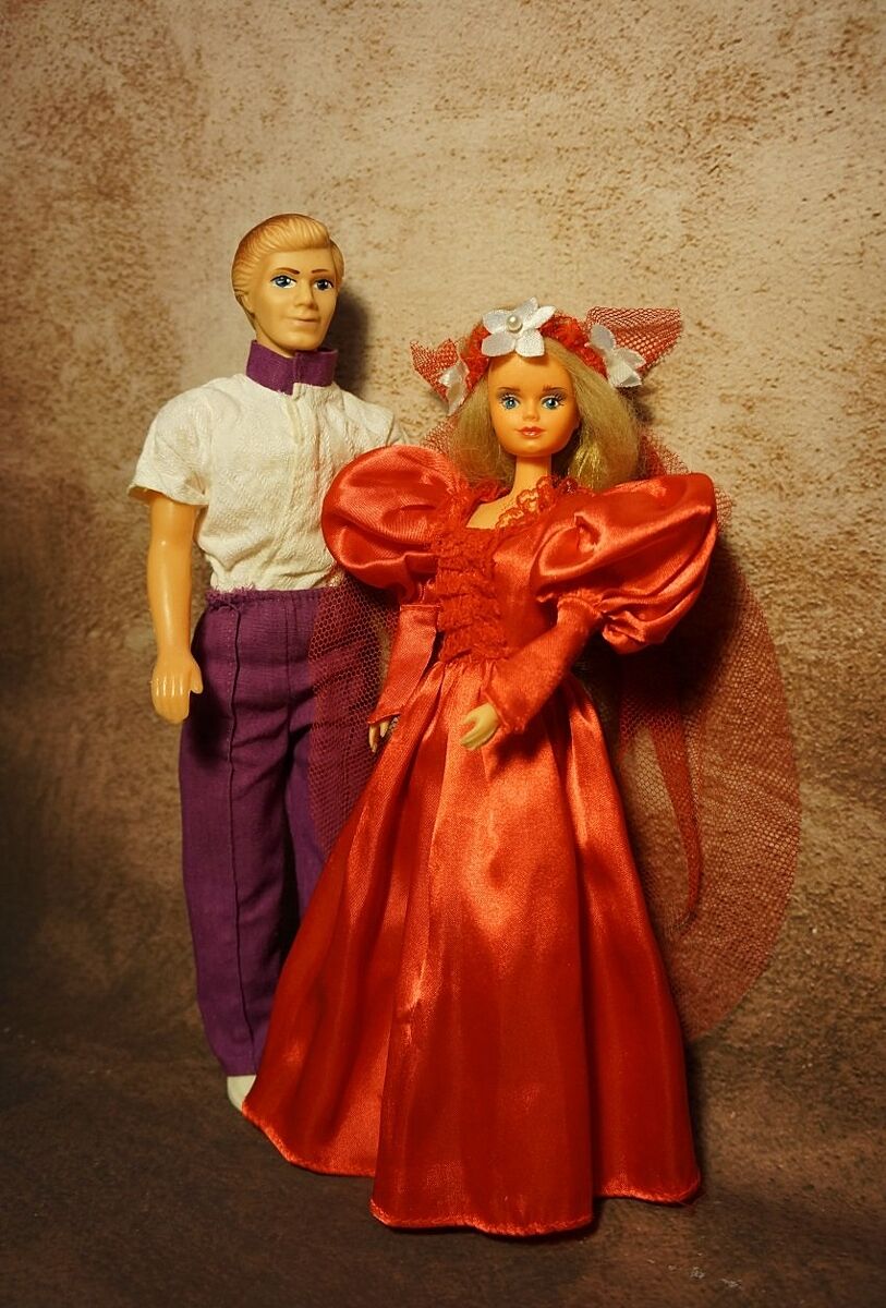 У мене була Санді/Сенді та чоловік і донька Венді зі спортивного набору (саму Венді я не любила, бо тіло легке й ламке, волосся нема, а Санді була важкенька, в неї ніжки гнулися на кліки, і через те я входила до дворової еліти, бо ми визначали так: легке тіло з пластику – підробка, важкеньке з гнучкими ногами та руками – оригінал). Мені Санді подобалася більше за Барбі, бо вона не вишкіряла зуби весь час. І купа наборів рожевих меблів Gloria, хоч і найдешевших, без жодних аксесуарів. Я в універ вступила у 16, то з першої стипендії купила собі кілька наборів, на які в дитинстві могла тільки облизуватися, бо не було грошей. Зараз мені вдвічі більше, продовжую збирати і ляльок і меблі (не завжди потрібен весь набір, тому рештки розкошів розпродаю). Фото не мої, у Санді зламався шийний шарнір (часта проблема в них), а спортивну родину віддала. Шукати саме цю ляльку не буду, але червону сукню хочу повторити.