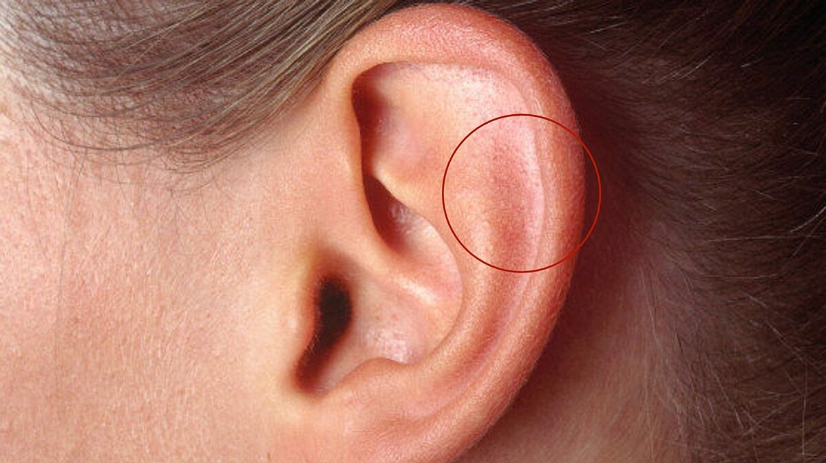 Поцарапал ребенок. В ушах самая тонкая кожа. Я когда мою уши, часто царапаю кожу.