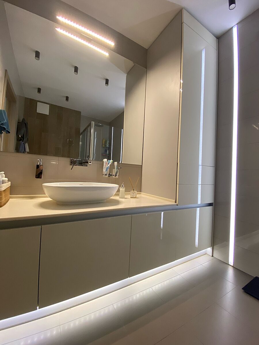 Проте чоловік захотів тіньовий профіль на стелю. Ось це з часом точно стане неактуальним. Але так було зручніше фарбувати стелю і стіни)