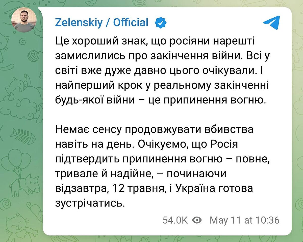 Президент Зеленський погодився, не ставлячи жодних умов. Тепер ми очікуємо такої ж чіткої відповіді від Росії.