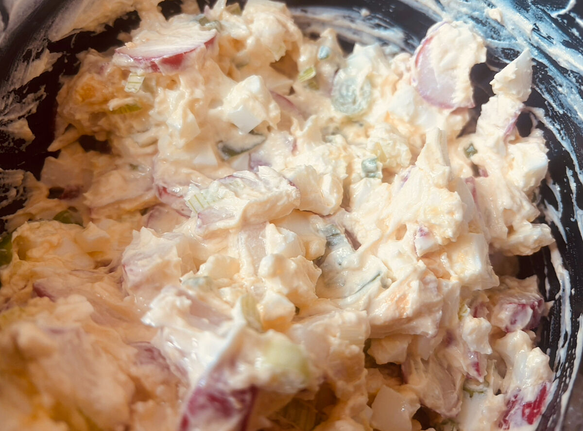 Всё по рецепту. Яйца, лук зелёный, сметана. Но я добавила ещё редиску☝️и это изменило ВСЁ