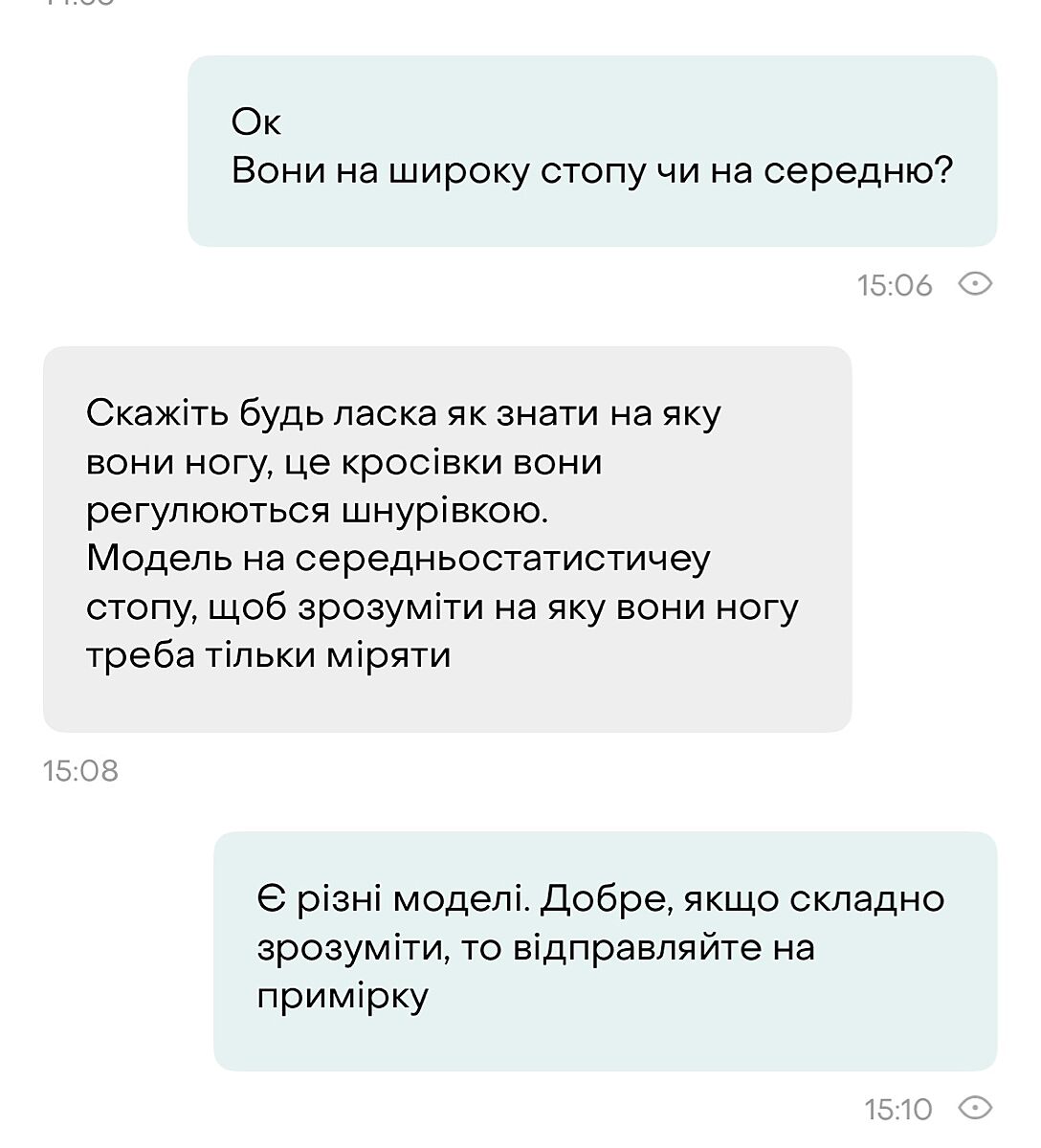 Але мені цікаво по яким параметрам ви оцінюєте чи підійде на широку ногу? Як продавець мав це оцінити?