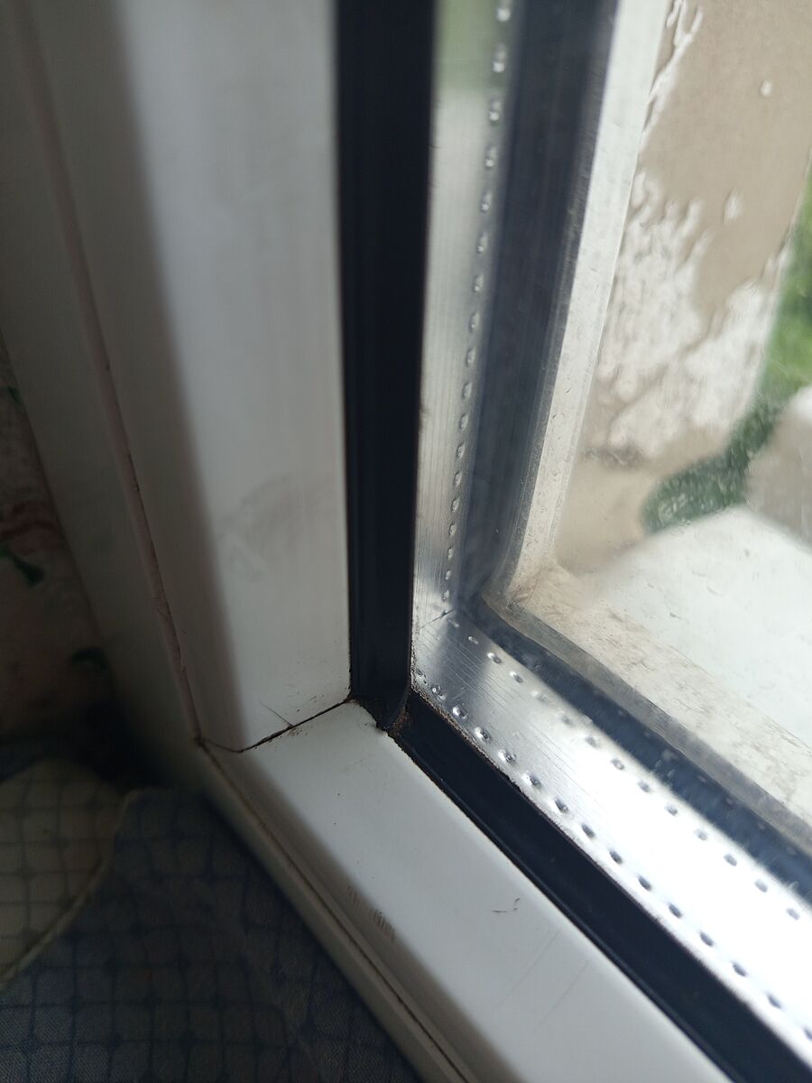 Никак...окно треснуто, царапины тоже не убрать. Живите с этим. У меня вообще подоконник новый, 3 года и уже вздулся, при этом брали не самые дешевые
