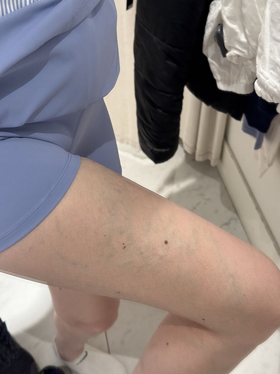 Ви б не про довжину шорт думали , а до лікаря пішли. Треба обстежити вени. Бо це серйозно.