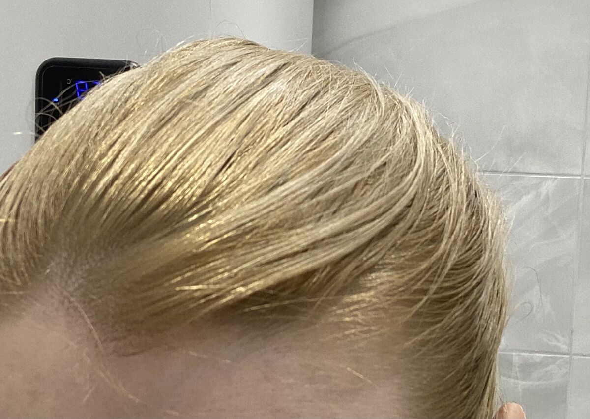 ( была беременна не красилась), родила и решила сама стать блондинкой. Так как ребенка оставить не могу, решила что смогу сама сначала осветлить корень, затем затонироваться. Осветлялась порошком и окислителем 9%. Корень получился светло желтым, сверху пробовала затонировать на 3% пепельным блондином, проф краской. В итоге длина взялась, а корень нет(( что я сделала не так? Корень не достаточно светлый я так понимаю?