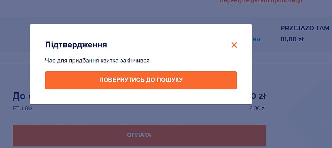 Не працює продаж квитків Варшава-Хелм на сайті https://ebilet.intercity.pl/