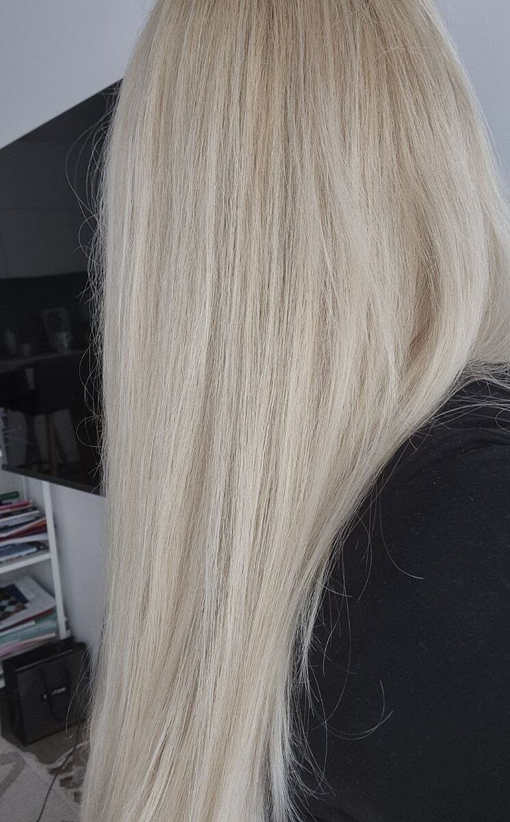 У вас просто Тотал блонд, поэтому с виду пересушено, и без блеска. У меня сложная техника, то на Brae волосы здоровые и блестящие. Но это не выглядит как Тотал блонд конечно. Я просто как светло-русая.