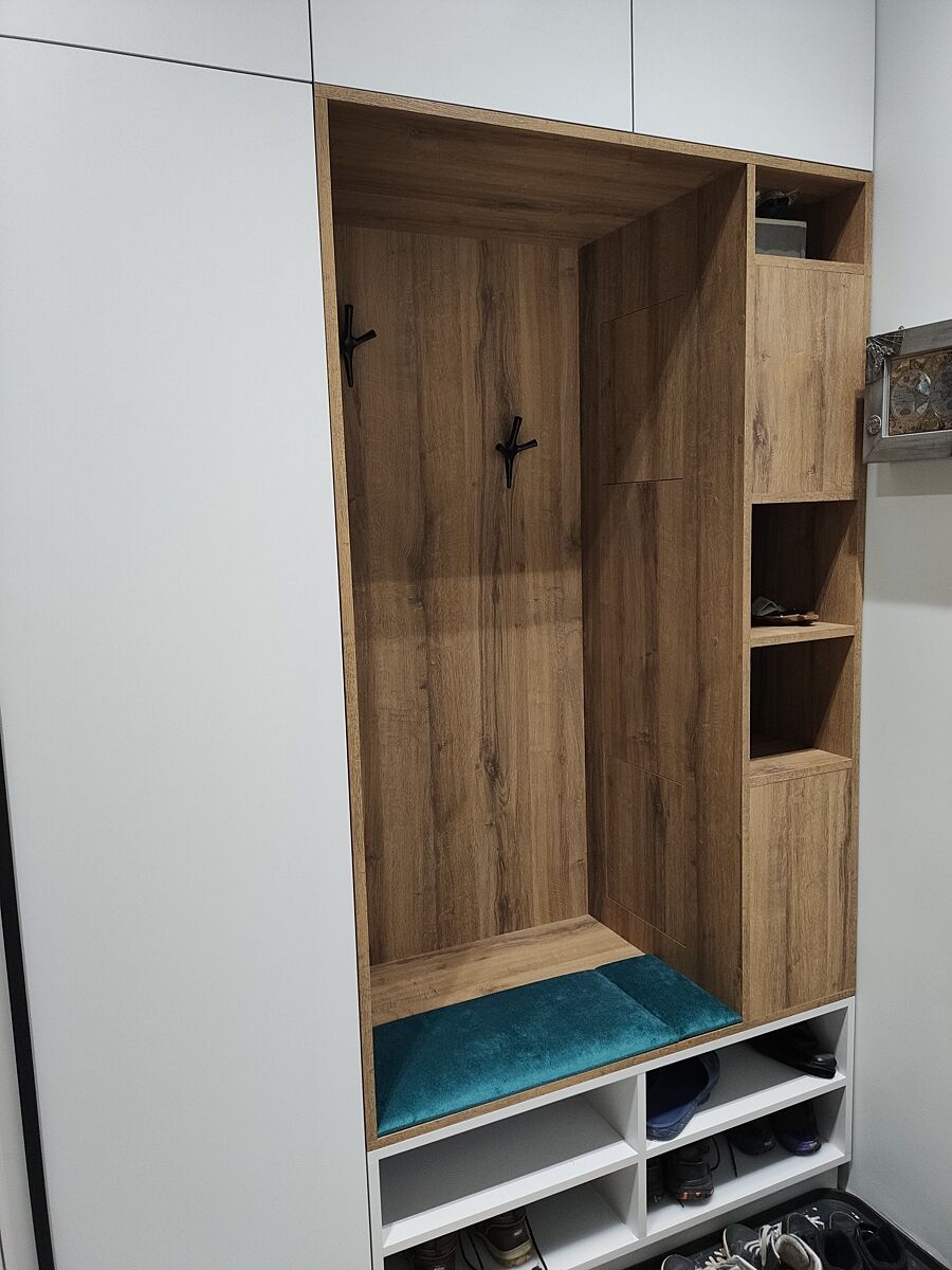 В мене довгий час стоїть банкетка. Але набридло мені взуття навиду. Враження, що вічний срач відкритий. Ще й здуру відкриту шафу зробила і ці куртки навиду, це взуття чисте чи брудне діти поставили на полицю і пішли. І все одно не поміщається все сезонне на 4люлини, наче ми і не шмоточніки, але в кожного по 3 пари. Враження, що сороканожка проживає.