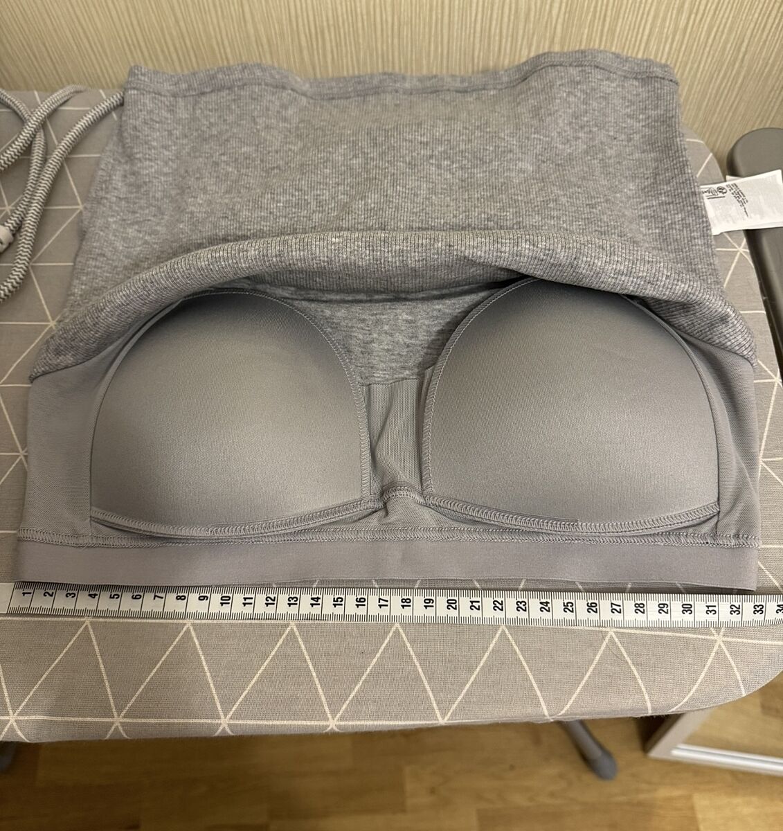 Смотрите, вот такого плана топы разных цветов я гребу не глядя. Нужно смотреть состав, они там есть тонкие, полностью синтетика. Эти в разных расцветках составы хорошие. Это М-ки, резинка тянется, но она тугая. У меня чашка В, но ориентируйтесь на объем под грудью.