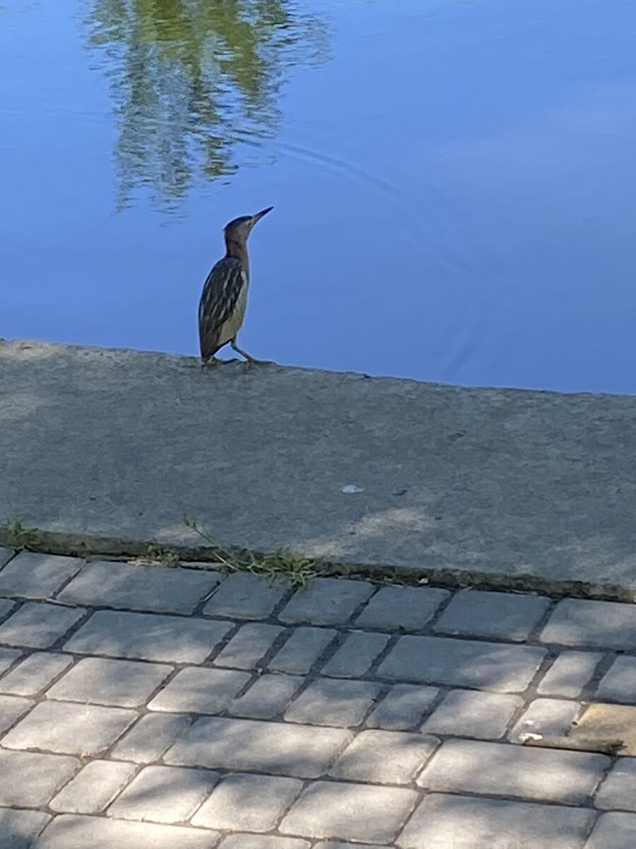 Мне уже сказали что это Выпь болотная , может жить возле стоячей воды и водоемов , как раз подходит
