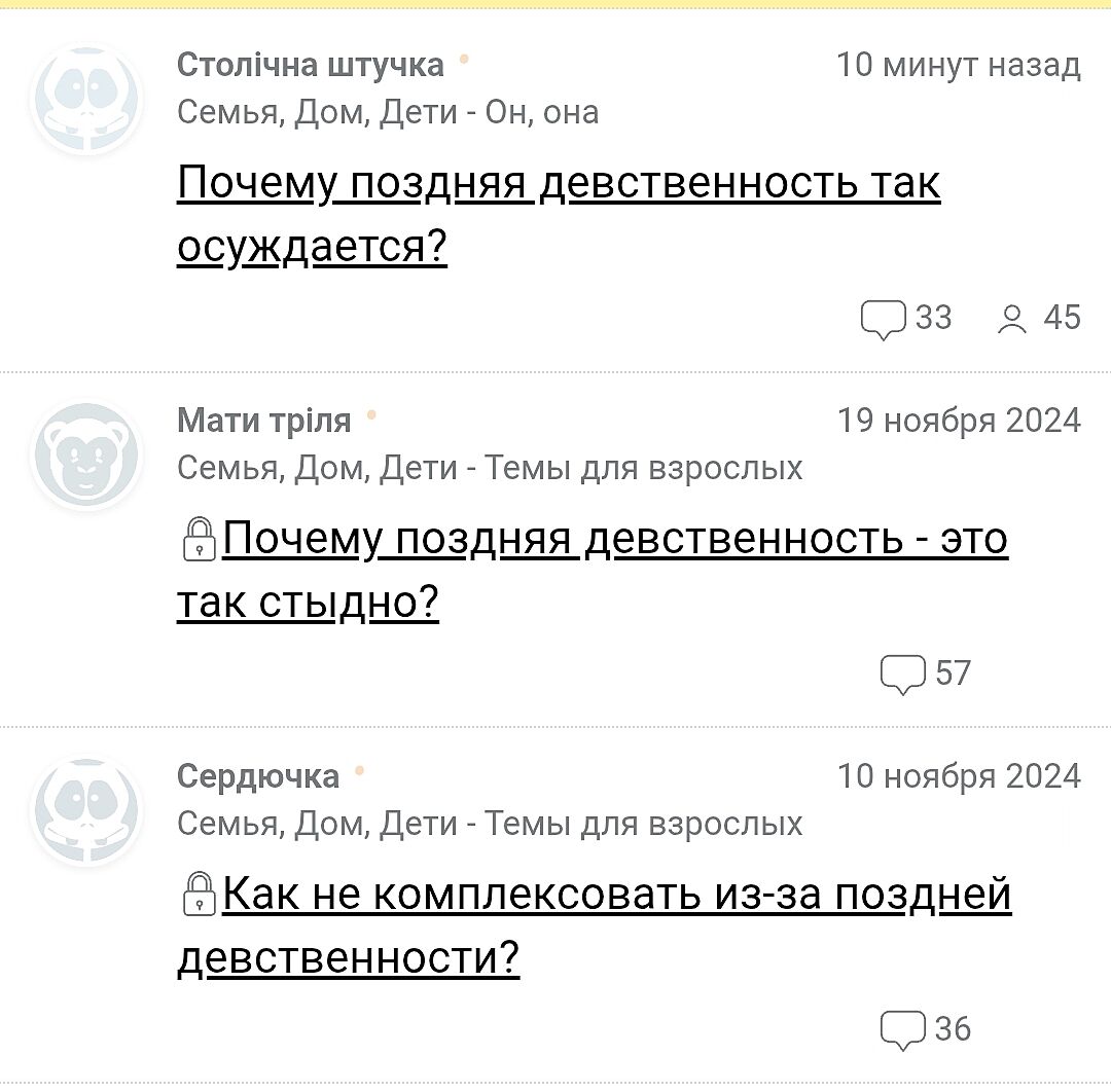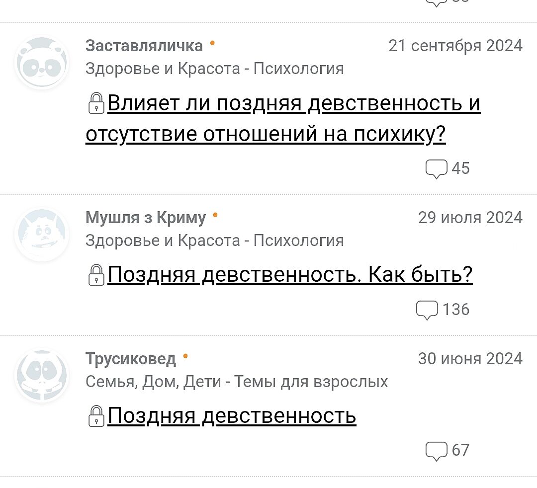 Мне абсолютно пофиг, если моя знакомая впервые занялась сексом в 16 или 26 лет (возраст взят с потолка, если что)