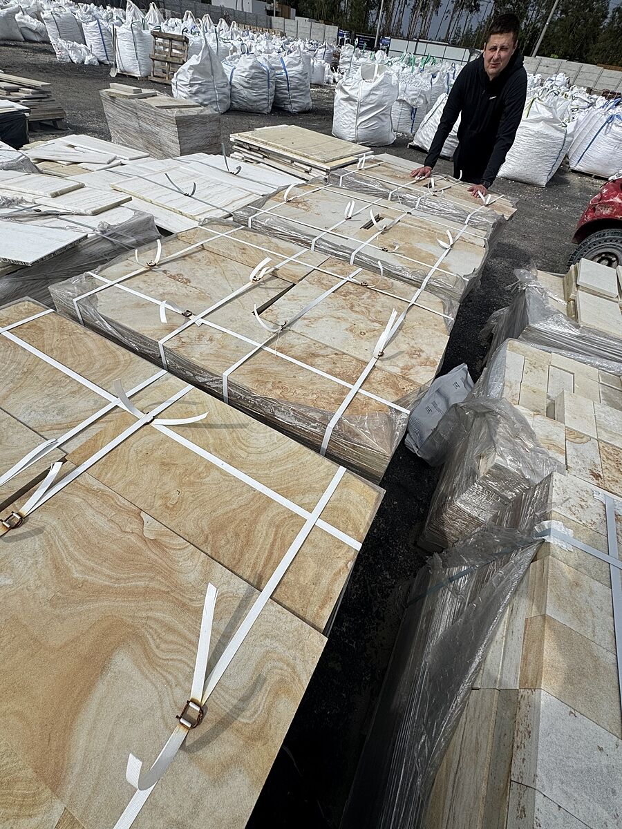 Я не знаю про який саме ви піщаник кажете але почитайте що то за матеріал. Це порода, яка йде слоями. І відповідно відслаюється. Ми піщаником зробили терасу на дачі. Там, де більше всього ходили- вона по відпадала. Прямо так слоями і знімалася. Задовбалися клеїти. Поки черговий майстер не сказав а навіщо ви брали піщаник. Він в основному для вертикальних поверхонь без навантаження. Всю тротуарну плітку на доріжки слава Богу, брали цеглинки Старе місто. Оце на віки