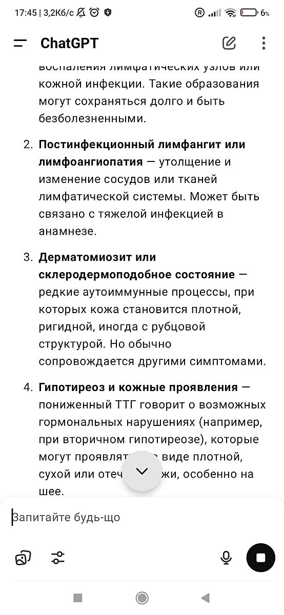 кроме шуток попробуйте спросить чпт гпт что это может быть.опишите ему подробно что было,у кого были,какие лечения проходили.он может подсказать куда рыть дальше
