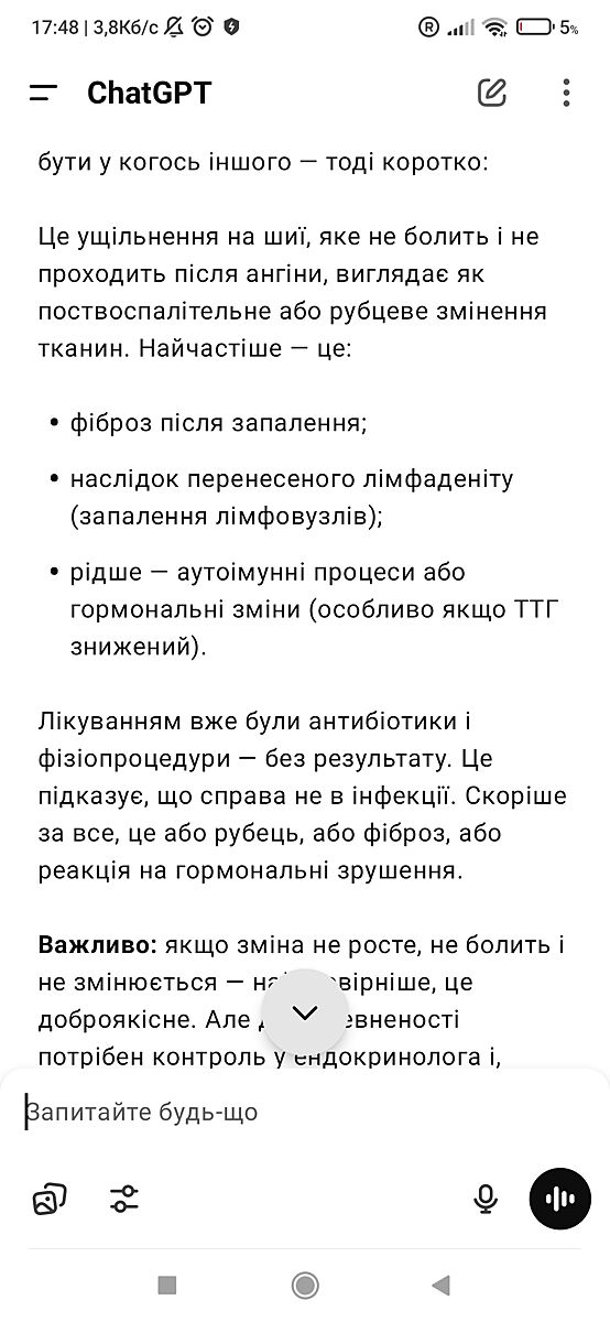 Так хтось з лікарів пояснив, що це за утворення? Лімфовузол? Внутрішній абсцес?