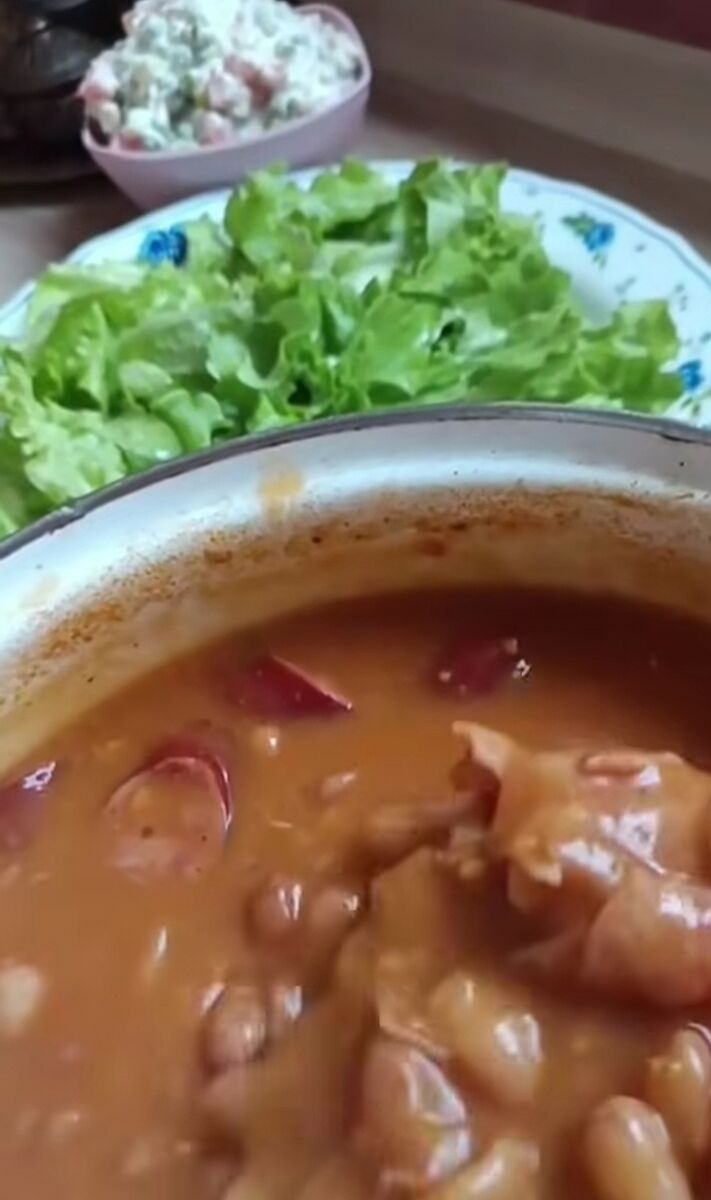 Похоже на солянку или копчености с фасолью. Да, ела бы