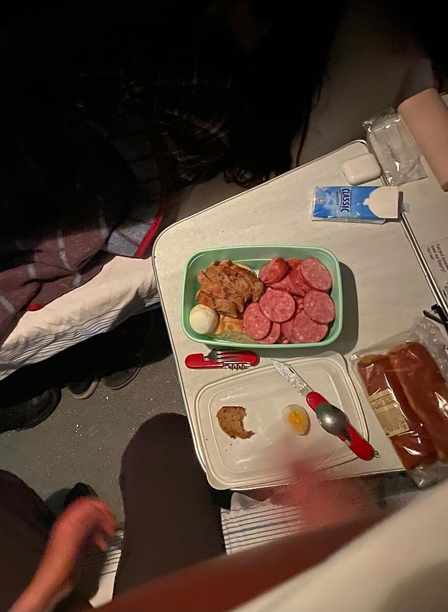 Можливо люди давно в дорозі, логічно що зголодніли. На нижній полиці дівчина відвернулась і спить. І вам би так зробити, а ні, треба 💩 на вентилятор накинути