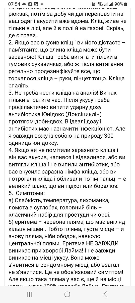 Вчора на меншій витягла кліща, добу точно він пробув, пишу педіатру (вже іншій), вона відповіла, що якщо кліщ провисів до 72 годин, антибіотик не показаний.