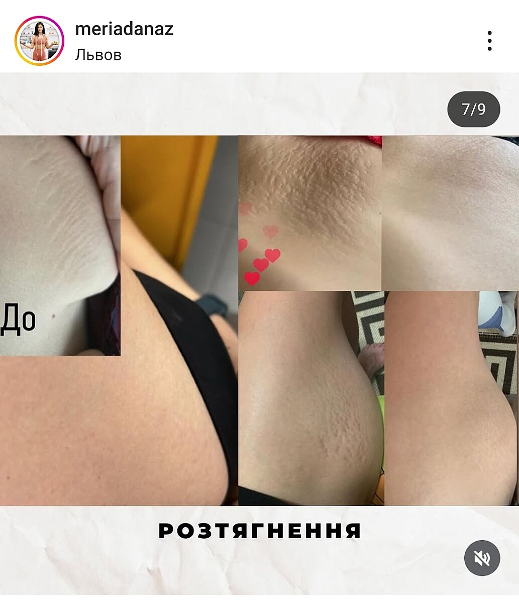 Я заказывала крем у блогера, у нее самой шикарные результаты, и он действительно классный, хотя сами растяжки все равно видно, кожа стала плотной и перестала морщинить. Но, как она говорит, разбомбили предприятие в Харькове, где она