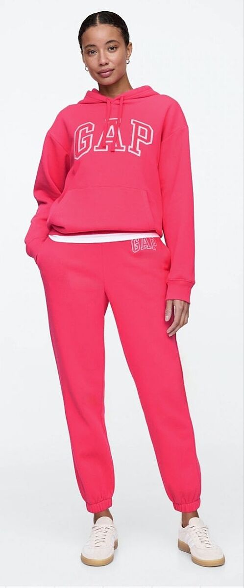 ну вот отдельно худи+белые шорты +длинные загорелые ноги я еще могу одобрить. но вместе с малиновыми штанами - ну фигня.