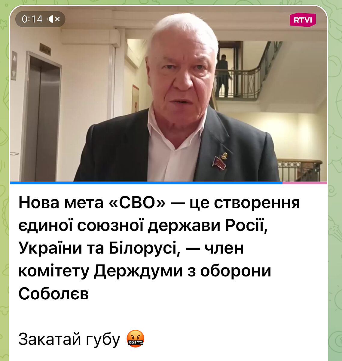 ❗️Нова ціль "СВО": створення єдиної союзної держави росії, України та Білорусі, — член комітету Держдуми з оборони Соболєв