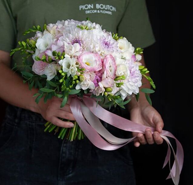 Залежно від кольору сукні і чи буде той букет хтось ловити. Якщо ловитимуть, то 2 або 3. До білої сукні 1 або 2. До сукні в молочно-бежевих тонах - 1 або 3.