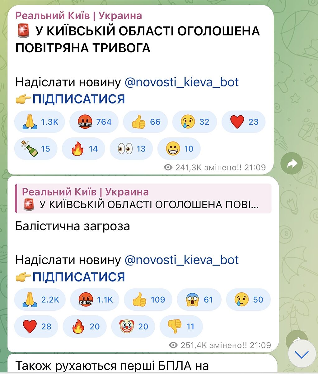 а на балістику в Києві я так розумію вже не дають тривогу тільки в області