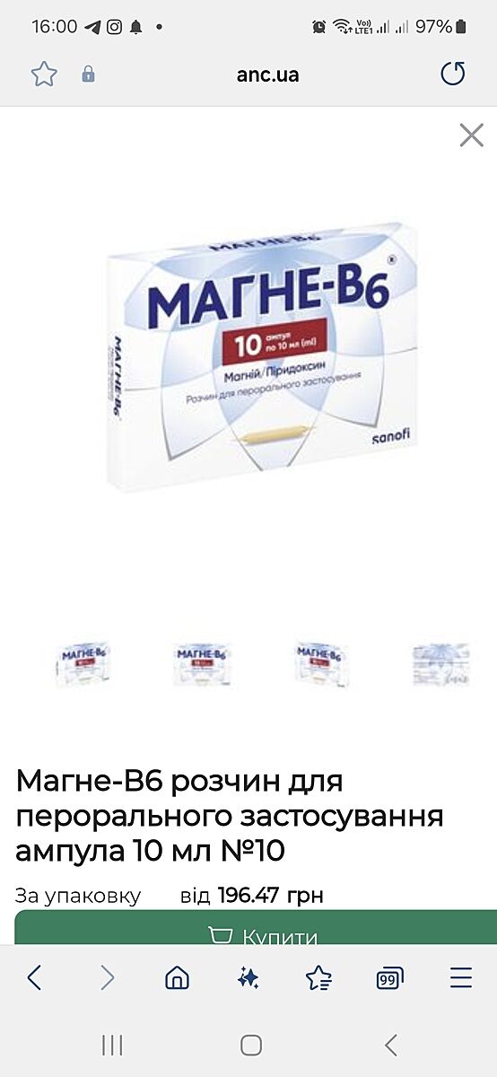 Так і називається Магне В 6 в ампулах.Я пізніше вам напишу, як нам прописав лікар, як раз в 10 років, були в поважного невролога:)подивлюся в карті дитини.