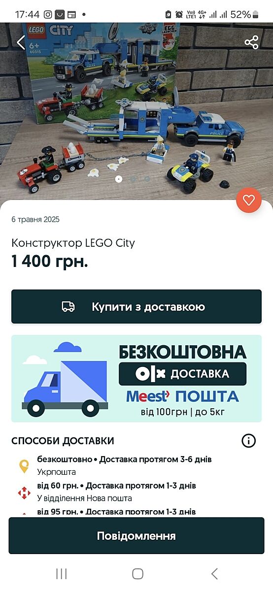 У мене є два набори Лего сіті з інструкцією, без коробки. Син виріс. Дуже знижена ціна