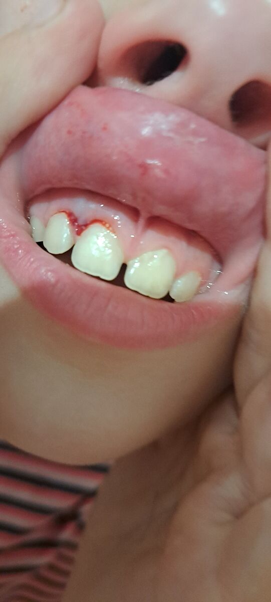 дитина впала на вулиці, вище верхніх зубів йшла кров.