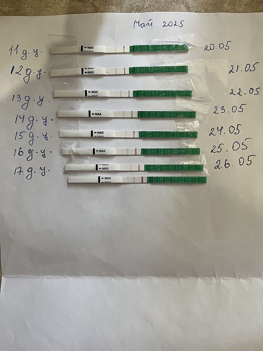 Почала робити тести с 11 дня циклу,і ось на 17 день почав боліти яєчник як перед місячними.Але на тестах я овуляцію не бачу(