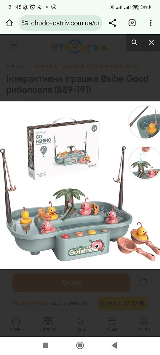 Вот. У нас играл весь двор. Она на батарейках, включаешь, создается поток, утки плывут и надо ловить (в год сачком, потом удочкой).