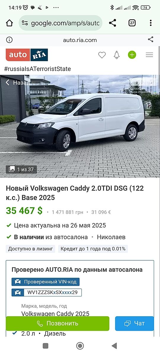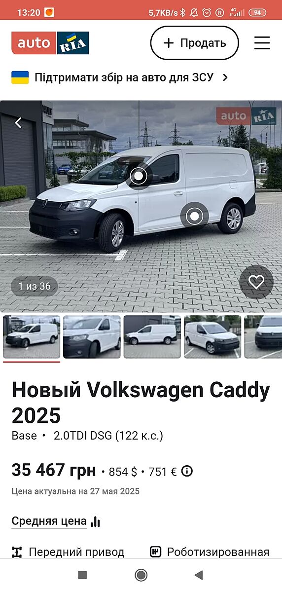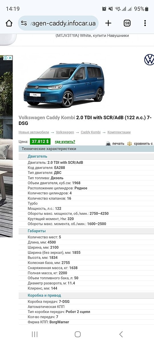 Новий Volkswagen Caddy 2.0TDI DSG (122 к.с.) Base 2025