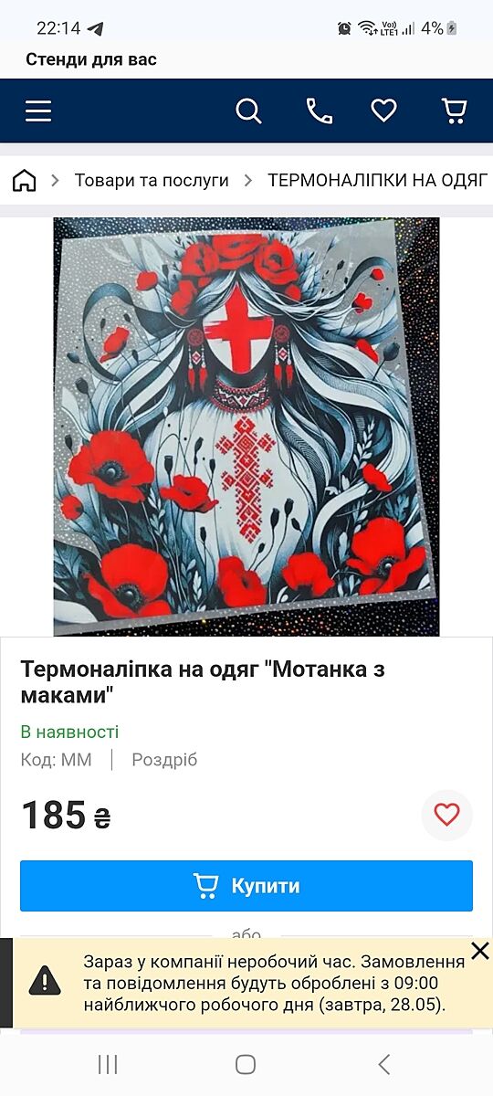 Дякую. Я замовила термоналіпку. Якщо не перегорю, напишу вам
