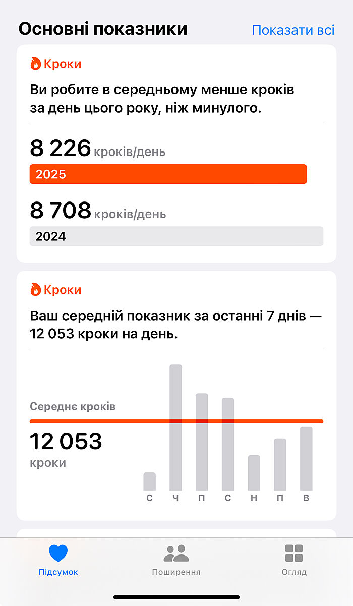 Якщо брати середнє за день, навіть коли я з дому не виходжу, або коли хворію, то більше 10 тис в день виходить