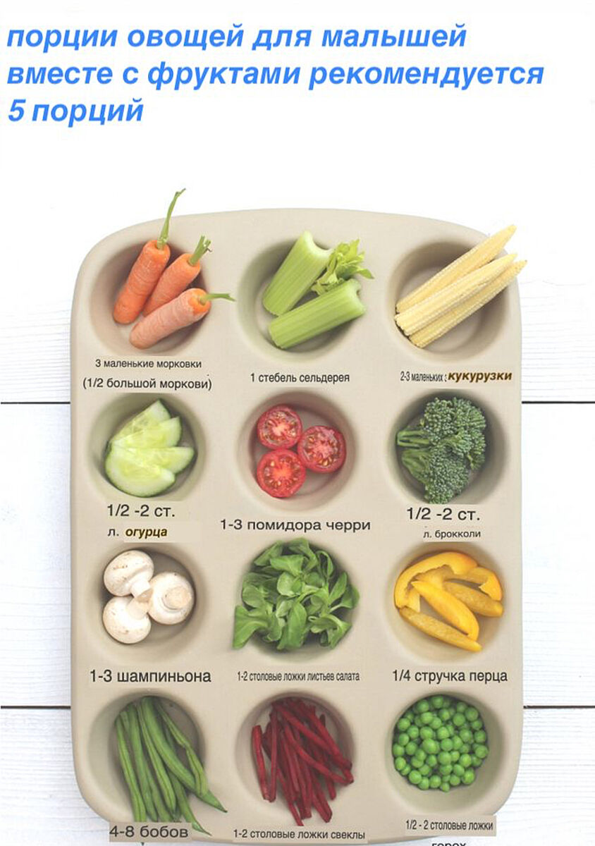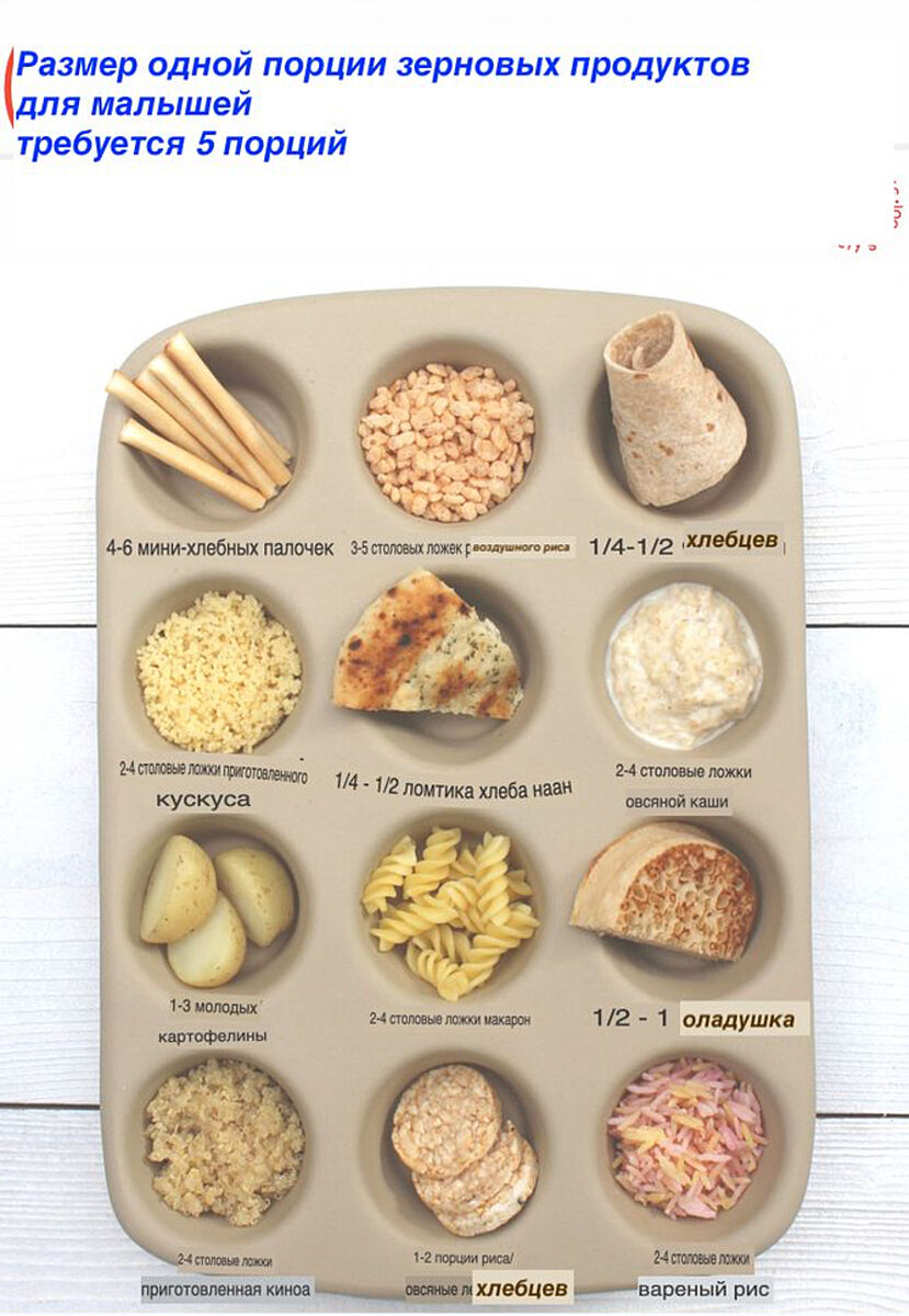 Вот по количеству сохранила себе картинки из американского вроде перевода. Количество порций - это в сутки.