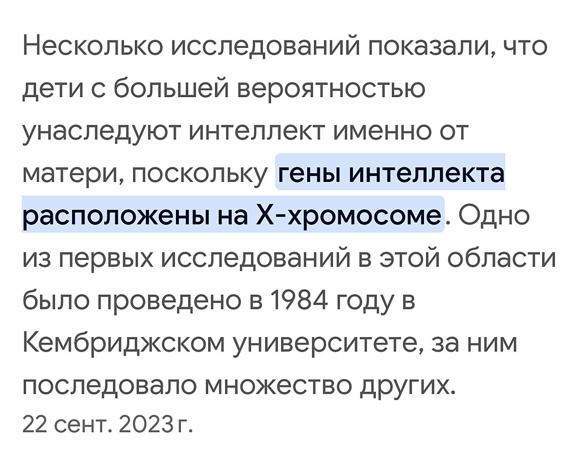 Судячи по моїй сім´ї, то я з цим твердженням не погоджуюсь. Дитина може успадкувати інтелект як від батька, так і від матері.