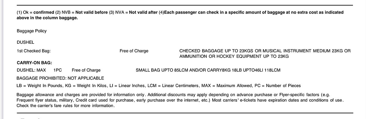 Наступний рядок Dushel максимум 1 шт безкоштовно. І далі ручна поклажа розміри, вага до 8 кг. Взагалі дуже дивно, ніколи з таким не стикалася.