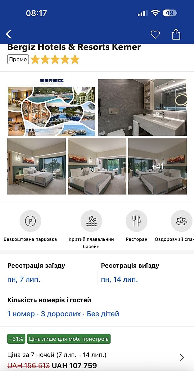 Минулого року їхали, Анталія Гейнюк, у них прямо в готелі рекламка трансферу є, ми брали не через готель. Але всюди було однакова ціна . Хотіли спочатку Ліберті Лікію Олюденіз, ціна космос, 11 000 доларів. Дивимося Гейнюк, ми там багато де були, побачила що відкрився цього року новий готель - Бергіз, він біля Кімероса. Я минулого року ще задивлялася на нього, саме ремонт був там, і зараз на нього промо ціна. От думала туди. Тому що той же Кімерос минулого року 140 на трьох, цього вже 270 000, сім ночей.