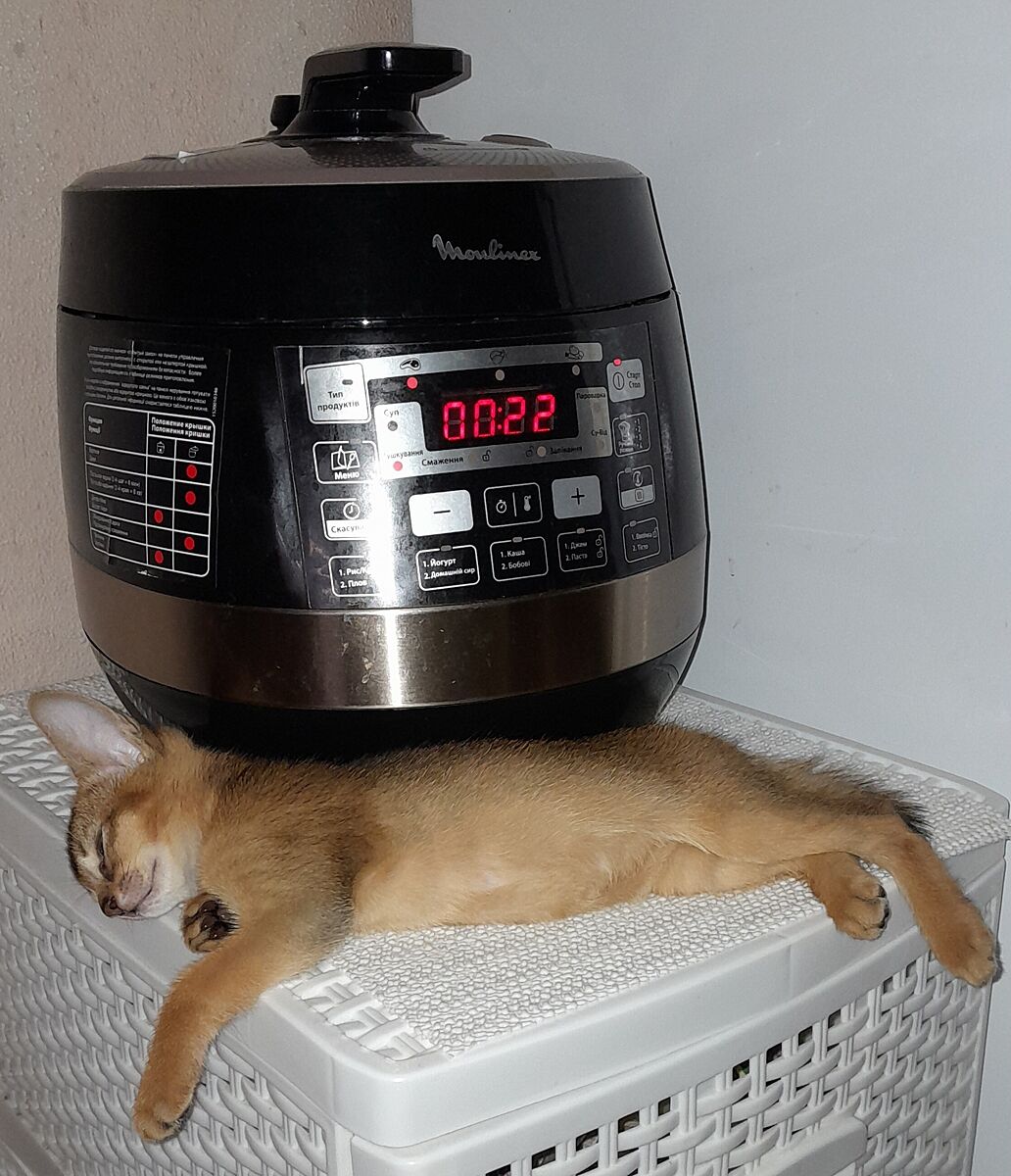 Так, пам´ятаю) Бігала за мною, я готувала і вона поруч ( побоювалась сама), я її перший час на руках носила)) . Хоча потім кицька осміліла, понеслась по кімнатам. Заморилась, заснула на голій долівці, просто рухнула, я їй одіяло підтягла, щоб пом´якше було. Потім вже освоїла кровать сина, з ним спала, тепер купа лежачків.